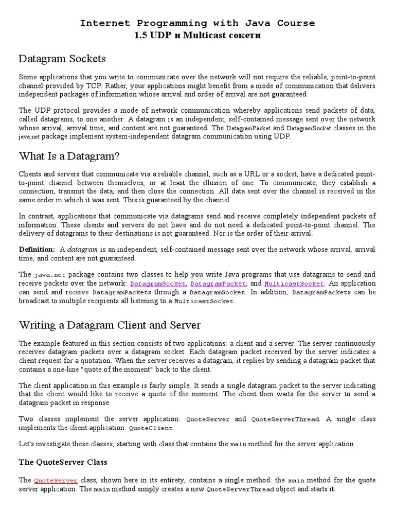 Datagram Sockets Programming with Java Course 1.5 UDP и